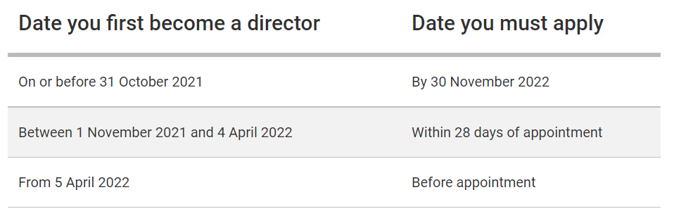 Since the 5th of April, 2022, anyone wishing to become a company director must apply for a director ID before being appointed. Previously, the date you first became a director determined when you needed to have applied by.