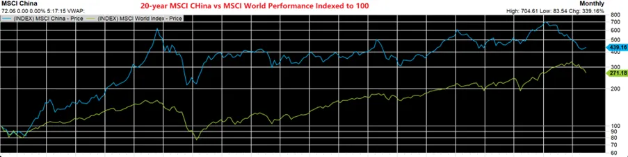 4. From a longer term, China equities exhibited higher volatility but more attractive returns, MSCI China 439% vs MSCI World 271%.