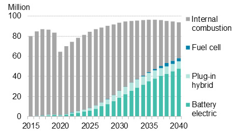 Global annual passenger vehicle sales estimates by drivetrain – Source: Bloomberg NEF