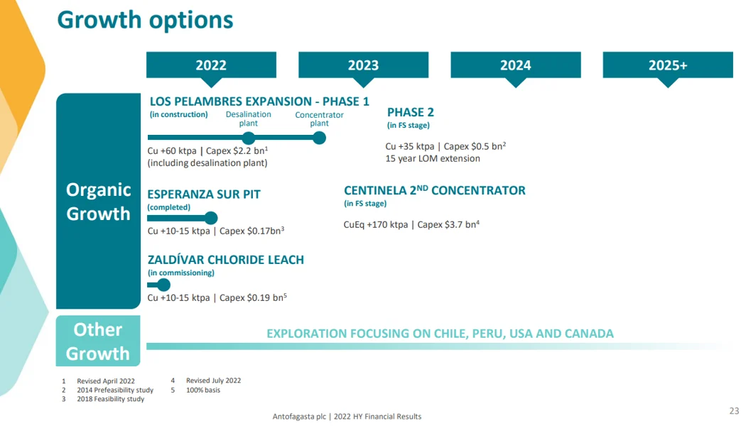 Antofagasta Growth Options – Source: Antofagasta HY Results 2022